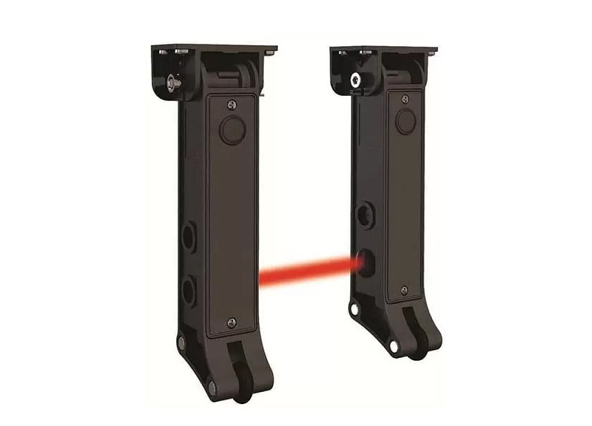 Фотоэлементы Alutech для секционных ворот с калиткой с плоским порогом или стандартных секционных ворот, установка на края нижнего профиля полотна ворот, визуализация работы с помощью светодиода.