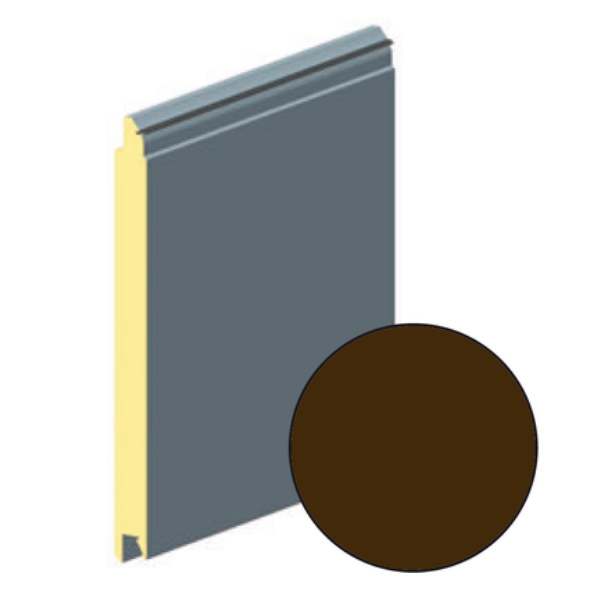 Используется для секционных ворот ALUTECH Наружная сторона: структура поверхности woodgrainс рисунком L-гофр (широкий гофр), цвет - RAL8014
